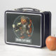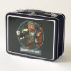 A fighting cat marine character on a metal lunch box. Edit the design to change the "ORANGE CATS ROCK!" text and make a unique, customized item. My original, alternative artwork of a fierce, futuristic feline on a bug hunt, with a rifle in one hand, pistol in the other, and armour including a breast plate with a fish bone emblem. A dual tribute to a great sci-fi action film and to crazy ginger cats everywhere, a gift for fans of sci-fi and cats.