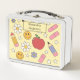 Faites du déjeuner un plaisir et une expérience personnelle grâce à cette lunchbox en métal sur mesure qui offre un design dynamique de retour à l'école! Orné de crayons colorés, de visages souriants, d'étoiles, de papier carnet, de fleurs et de pommes, ce design gai est parfait pour les étudiants qui veulent porter un peu de joie avec leurs repas. Cette lunchbox de haute qualité est durable, facile à nettoyer et peut être personnalisée avec le nom de votre enfant, ce qui la rend facile à repérer dans la salle à manger. Idéal pour les séjours scolaires, les pique-niques ou les excursions d’une journée, c’est le compagnon idéal pour chaque journée scolaire. Personnalisable avec n'importe quel nom Construction métallique durable avec doublure en plastique Fermeture et intérieur spacieux Parfait pour les enfants d'âge scolaire Design amusant, coloré et motivant