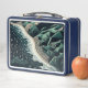 Serene Shores: This stunning top-down illustration the harmony of land and sea, featuring waves wgently breaking on sandy beaches with lush green mountains in the background. Rendered in soothing shades of dark blue-green, the artwork evokes a sense of tranquility and balance. The intricate details of the ocean’s patterns meeting the shore, paired with the trees lining the water’s edge, enhances the peaceful atmosphere. Created in a woodcut print style with simple lines and a flat design, the piece is reminiscent of hand-drawn animation, offering a timeless, serene depiction of nature's beauty.
