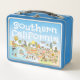 Une vue cartoon de la Californie du Sud dans toute sa gloire - personnages et créatures fantaisistes sont à la hauteur de leurs vieux tours dans le désert et l'océan, avec Los Angeles, San Diego, Long Beach, Anaheim, ainsi que Père Noël Barbara, Riverside, Palm Springs, et El Centro, et beaucoup d'autres...