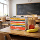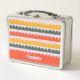 Bright, playful, and full of charm, this lunch b0x features hand-painted scalloped rows in warm coral, sunny mustard, and deep green on a soft blush background. The rhythmic arches create a cheerful, modern-retro look that feels both cozy and celebratory. Personalize it with your name today!