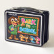 Cette lunchbox hilarante présente un chien de dessin animé malicieux habillé comme enseignant, pointant vers un tableau de bord avec "BARK TO SCHOOL" écrit dans une police colorée et obscure. Un groupe de chiots de bandes dessinées regardent avec des expressions d'amusement et de légère terreur. Parfait pour les enfants qui aiment un peu le chaos ludique.