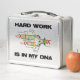Montrez votre sens de l'humour de la réplication de l'ADN avec cette boîte à lunch avec le dicton "Le travail dur est dans mon ADN". Faites faire aux autres une double prise sur l'endroit d'où vous obtenez votre nature travailleuse avec une dose d'attitude génétique à votre prochain repas avec cette lunchbox métallique!