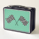 Une voiture de course sportive avec une toile de fond verte et à damiers drapeaux de course en dessous et en haut d'une zone où vous pouvez personnaliser pour en faire votre propre. Vibes de voiture rapide de garçons.