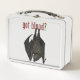Parfait pour une trousse de premiers soins, cette lunchbox en métal a une grande croix rouge d'un côté, et une chauve-souris vampire pendue aux mots "got Blood?" de l'autre côté.