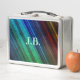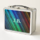 Colorful Gras Stripes en blues, verts, bruns, rousses, dorés avec vos initiales et Nom Boîte à lunch en métal. Vous pouvez ajouter vos initiales/nom (ou le texte que vous préférez) à l'avant et à l'arrière. Des rayures colorées en gras s'adaptent à leur personnalité. FRONT Texte modifiable : Initiales ou autre RETOUR : Nom ou autre