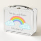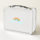 Boite à lunch en métal rétro amusant. Design arc-en-ciel. Grewat pour cela qui comptent les calories ou qui ne le font pas. Quelque part au-dessus de l'arc-en-ciel... les calories ne comptent pas est écrit sur cette petite boîte adorable.