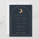 Conçu pour se coordonner avec notre collection mystique céleste, cette carte de faire-part de mariage personnalisable unique présente de magnifiques éléments célestes d'or sur un arrière - plan de marine sombre avec une bordure en arc. Pour une personnalisation plus avancée de cette conception, par exemple la modification de la disposition, de la police ou de la taille du texte, cliquez sur le bouton "PERSONNALISER" ci-dessus. Veuillez me contacter pour toute question !