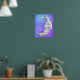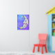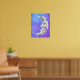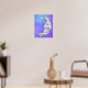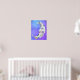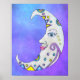Décorez votre maison avec cette affiche d'art économique qui a un imaginaire croissant blanc avec un visage et des yeux bleus avec de jolies décorations colorées en bleu, jaune et violet dans un ciel bleu et violet avec des étoiles pointillées.
