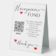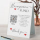 Une façon courtoise et amusante de demander de l'argent pendant votre wedding shower. Ajoutez votre propre image de code de Venmo QR à votre signe de fonds de lune de miel. Utilisez le libellé de votre propre fonds de lune de miel pour correspondre à votre propre style. Commandez plusieurs affiches de fonds pour votre mariage à la réception, à votre table cadeau, à votre table de réservation et à d'autres endroits dans votre hall de réception. Payer via Venmo est un moyen amusant pour les mariages de faire un cadeau d'argent pour leur lune de miel mariage. Ce panneau d'affichage de Venmo peut également être utilisé lors de votre douche nuptiale.