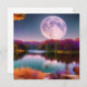 Feuillage d'automne violet et orange Lakeside sous une lune de récolte Ai Généré Art par minx267