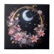 Couronne de fleurs et de lune. Ce carrelage en céramique est idéal pour un backsplash, un wall art, ou comme pièce d'art autonome.