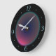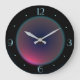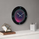 Une forme de lune ronde, présentant une teinte iridescente rose avec des nuances bleues. Une bordure noire avec des chiffres bleu clair complète cette horloge saisissante. Disponible en formes carrées et rondes.