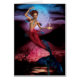 C'est une sirène dirigée rouge magnifique de mer devant une lune mystique.