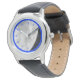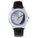 Lune, montre en acier inoxydable pour enfant avec bracelet en cuir noir et chiffres bleus