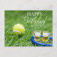 Lunettes de bière avec la carte d'anniversaire du ballon de tennis
