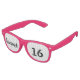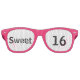 Les lunettes de soleil modèles ont un modèle texte qui dit 'Sweet 16'. Le texte noir peut être modifié pour créer un message personnalisé.