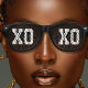Lunettes de soleil rétros noires cool avec le texte "XOXO". De magnifiques lunettes d'été ou de fête pour les femmes et les filles.