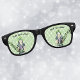Ces lunettes de fête rétro sont vertes avec une fille éffrayante en robe noire et violette avec des cheveux noirs verdâtres et un casquette vert vif. Customisez votre texte avec le modèle.