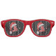 Ces lunettes de fête présentent la phrase "Deck The Halls" dans une police d'impression Zing Rust Base avec des lettres de couleur rouge et un contour blanc sous un chapeau de Noël de Père Noël avec une collection de flocons de neige en arrière-plan dans ce style et thème de jour de Noël. Ces lunettes ont des verres clairs résistants aux rayures avec impression couleur totale et protègent à 100% des UV et comprennent une pochette en microfibre pour le stockage et le nettoyage.