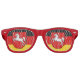 Sunglasses with flag of Lower Saxony; design with horizontal tricolor of black, red and yellow (golden), with state’s emblem with an illustration of a white horse in the center