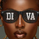 Lunettes de soleil rétros noires cool avec le texte "DIVA". De magnifiques lunettes de mode été ou fête pour les femmes et les filles.
