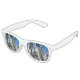 Des palmiers tropicaux contre un ciel bleu. Lunettes de soleil d'été au design tropical.