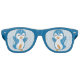 Drôle pingouin dansant en bleu avec de mignons pieds dansants. Joyeuses lunettes de soleil pour un zoo.