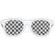 Eyepster des nuances de fête amusantes affichées dans des cadres blancs avec un imprimé drapeau de race noir et blanc. Vous pouvez modifier les couleurs des cadres, Customiser cet article ou acheter tel quel.