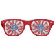 Montrez votre fierté patriotique avec ces lunettes de soleil amusantes avec des tournesols rouges, blancs et bleus sur un arrière - plan blanc. Parfait pour les célébrations du 4 juillet de la fête de l'Indépendance, ou à tout moment vous voulez célébrer les États-Unis.