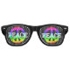 Lunettes de soleil de fête : lunettes de soleil rétro classiques avec le texte "PAIX PAIX" et symbole de la paix arc-en-ciel - mode amusante, fête de fin d'études, Secret Santa, célébrations au bureau / soirée