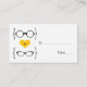 Carte Mariage Place pour lunettes Geeky Quirky et chic avec un coeur jaune flanqué de deux paires de lunettes geeky, une paire de manies et une paire de ceintures représentant le marié et la mariée. Cette carte d'escorte décalée mais sophistiquée est parfaite pour votre mariage nerveux ! Un espace est prévu pour écrire les noms et les numéros de table où chacun de vos invités mariages sera assis à la réception. Cliquez sur le bouton "Customiser" pour trouver d'autres options de personnalisation.