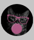 Le design est composé d'un chaton charmant contre un élégant arrière - plan noir. Le chat porte des lunettes de soleil roses élégantes qui lui donnent une touche de sophistication. Les lentilles ont une forme classique pour créer un look intemporel. Ce qui rend ce design particulièrement adorable, c'est que le chat mâche une gomme à bulle rose et forme une bulle ludique. Le ton rose de la chewing-gum et des lunettes crée un accent contrasté par rapport à l'arrière - plan noir et donne à l'image globale un aspect animé. Pour les amoureux de les chats, ce design aura certainement un attrait particulier car il combine la nature ludique des chats avec une touche d'élégance et de plaisir. Idéal pour les amateurs de dessins humoristiques et stylisés de chats.