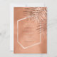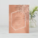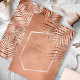 Une palette de couleurs tendance dans les tons terre cuite, cuivre et rouille, des cadres géométriques étincelants et des aménagements design élégants, constituent la base de cette suite mariage passionnante. Que vous planifiez un mariage de destination ou que vous séjourniez à proximité de chez vous, cet ensemble délicat en feuille de palme fait un choix attrayant. La carte mariage "Invitation" présente également un motif en feuille de palme transparent au verso. Un modèle est fourni pour ajouter tous les détails de votre événement. Recherchez ID956 pour voir d'autres pièces et choix de couleurs pour cet ensemble.