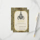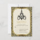Lustre Art Déco noir, carte réponse RSVP or avec lustre noir, bordure Art Déco et damas floral noir et doré sur beige/écru. Ce design élégant est une approche moderne d'un style vintage/rétro qui ressemble à celui des années 20 et du Grand Gatsby. Il fait partie d'un ensemble mariage et est entièrement personnalisable.