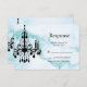 Un lustre en cristal de fantaisie sur un arrière - plan marbre turquoise illustré accentue cette RSVP, parfait pour une soirée élégante, moderne ou tendance. Il s'agit de la RSVP de coordination pour l'Invitation Bat mitzvah de lustre sur le marbre turquoise.