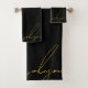 Une belle conception en noir et or incorporant la typographie de police de script signature. Un ensemble de serviettes de bain classe et élégant, idéal pour tous. Customisez le texte en or monogramme et la typographie script de la serviette de bain et faites-le vous-même!