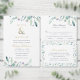 Invitations de mariage personnalisées et abordables personnalisées personnalisées avec les détails de votre événement. Cet élégant design présente un faux ampersand en feuille d'or avec des flancs d'eau bleu et vert délicats sur un arrière - plan blanc. Utilisez les outils de conception pour customiser le texte, modifier les polices et les couleurs ou ajouter vos propres photos pour créer un faire-part de mariage élégant et élégant.