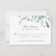 Cartes de mariage RSVP personnalisées et abordables avec une aquarelle boho verdure. Personnalisez le design avec vos informations de mariage RSVP. Utilisez les outils de conception pour customiser le texte, choisir une couleur arrière - plan et modifier les polices et les couleurs pour créer votre propre conception de carte de réponse mariage unique. Le côté inverse comporte un arrière - plan bleu marine ou utilisez l'espace pour ajouter du texte ou des photos supplémentaires si nécessaire. Ce magnifique design botanique moderne est parfait pour toutes les saisons.