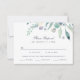Cartes de mariage RSVP personnalisées et abordables avec une aquarelle boho verdure. Personnalisez le design avec vos informations de mariage RSVP et les options de repas pour les invités. Utilisez les outils de conception pour customiser le texte, choisir une couleur arrière - plan et modifier les polices et les couleurs pour créer votre propre conception de carte de réponse mariage unique. Le côté inverse comporte un arrière - plan bleu marine ou utilisez l'espace pour ajouter du texte ou des photos supplémentaires si nécessaire. Ce magnifique design botanique moderne est parfait pour toutes les saisons.