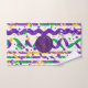 Whether you choose to display a monogram, meaningful text, or custom artwork, these towels bring personality and polish to your home. The illustration features bright colorful stripes of Mardi gras in purple, green, and gold, sprinkled with confetti patterns in playful festive style, vibrant and cheerful. In the center is text that can be personalized with your Name or Monogram. You can also remove it if you want the pattern only.