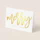 Design carte photo de vacances design moderne Luxe avec le mot "Joyeux" dans une police de texte en feuille d'or tendance. L'intérieur de la carte de vacances en feuille d'or contient des espaces réservés pour une photo et un message personnalisé.