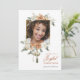 Une carte féminine luxueuse aussi unique que vous, ce carte photo de vacances de Noël a un modèle photo carré encadré de douce aquarelle éléments floraux qui comprennent des poinsettias rouges, des fleurs mélangées blanches et des verdures d'hiver et des feuilles. De beaux ornements rayés de carreaux sont accrochés aux fleurs basses, ajoutant un joli détail au design. Un message de voeux de vacances simple et élégant est inclus dans un modèle texte situé en bas à droite de la carte. Il dit "vous souhaiter un joyeux Noël" et est prêt à personnaliser avec votre ou vos nom(s). Le dos de la carte a un motif simple rayure de vacances en fines bandes de vert de forêt et beige d'ivoire assortis. Cette carte est un excellent choix pour les femmes célibataires ou les femmes vivant seules à envoyer à leurs amis et à leur famille. Il peut également être utilisé avec une photo de famille, une photo d'enfant ou une photo d'animal de compagnie. Une photo de carré soigneusement rognée a été utilisée dans l'exemple de l'espace réservé photo, de sorte que ce type de photo fonctionne le mieux avec cette carte.
