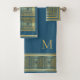 Serviette de bain en or bleu luxueuse et élégante avec un monogramme personnalisable / initial. Beau cadeau pour les hommes ou les femmes adultes avec style exclusif.