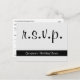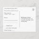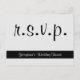 Cette élégante carte postale RSVP présente le message "r.s.v.p." sur le devant, ainsi qu'une description customisée de l'événement ou de l'occasion. Il comporte également un formulaire RSVP personnalisé au verso, ainsi qu'une adresse personnalisée à laquelle les cartes RSVP remplies seraient envoyées par la poste. Les cartes RSVP comme celle-ci pourraient peut-être être utilisées pour savoir qui assistera à une fête de retraite, à une fête de remise de diplômes, à une réception de mariage ou à un autre événement.