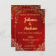 Cette faire-part de mariage dégage une atmosphère royale et luxueuse avec ses riches détails de couleur rouge arrière - plan et or. Les motifs floral et tourbillonneux en or et blanc viennent rehausser l'esthétique classique et sophistiquée. La combinaison du rouge profond et de l'or chatoyant symbolise l'amour, la passion et l'élégance, en faisant un faire-part de mariage intemporel et grandiose.