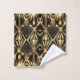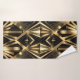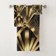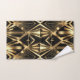 Transform your bathroom into an opulent retreat with this striking Art Deco matching towel set. The design features a bold, geometric pattern inspired by the Jazz Age, utilizing radiant sunburst motifs, elongated triangles, and diamond shapes. The pattern is rendered in a rich, metallic gold tone that contrasts sharply against a deep black background, creating a glamorous and sophisticated look.
