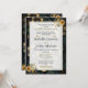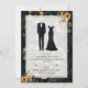 This invitation features a rich black background with green, yellow, and gold floral elements, creating a royal yet minimalist European-style wedding card.