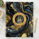 Elevate your daily organization with this stunning Luxury Glam Black Blue Gold Agate Marble Monogram Planner. Designed for the modern trendsetter, this cover features a mesmerizing fluid art aesthetic that mimics the look of swirling alcohol ink, deep navy and black geodes, and glittering gold veins.