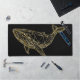 Transform your entire workspace with this premium geometric whale desk mat. The panoramic design features a majestic humpback whale illustrated in an intricate polygon wireframe style, rendered in a sophisticated faux gold texture.